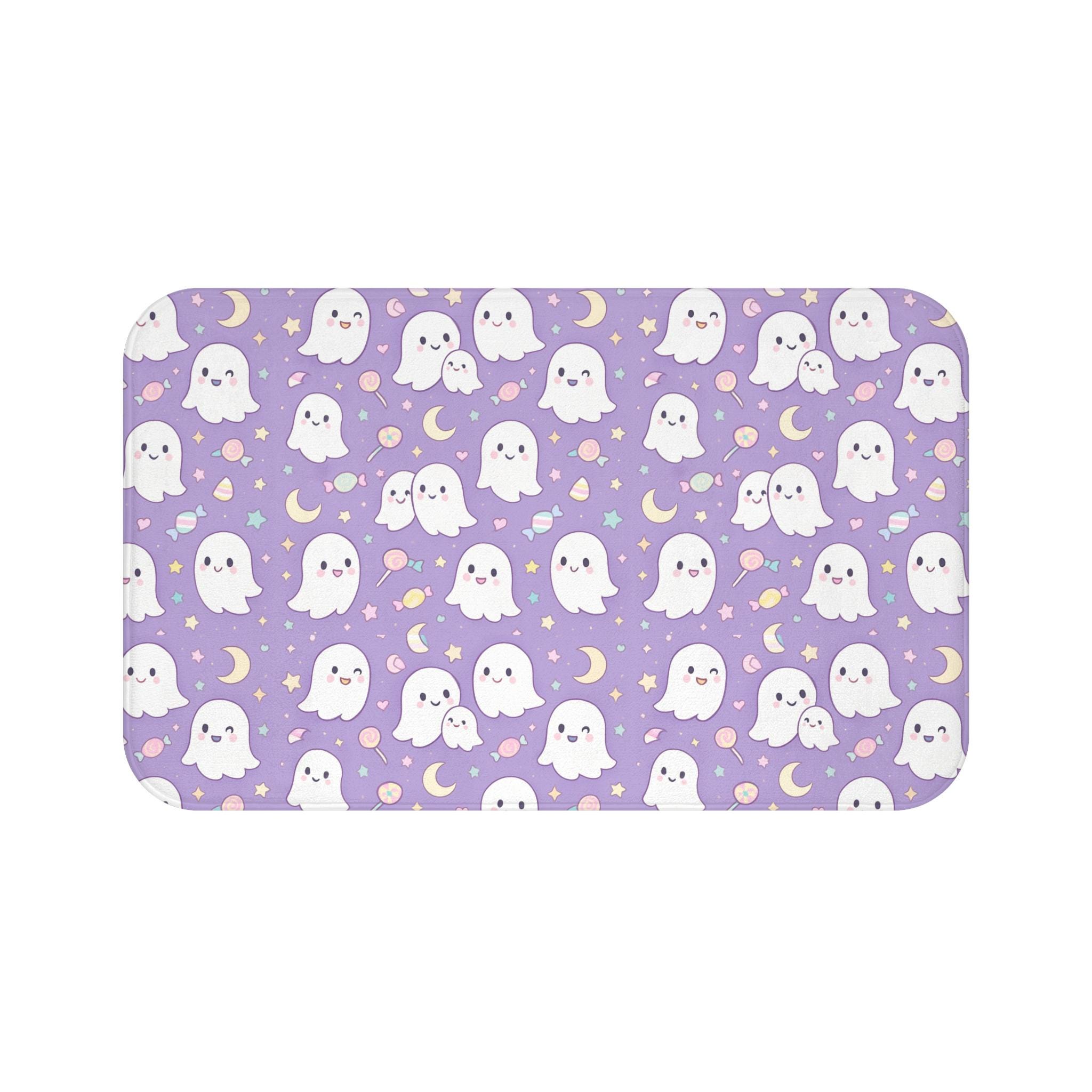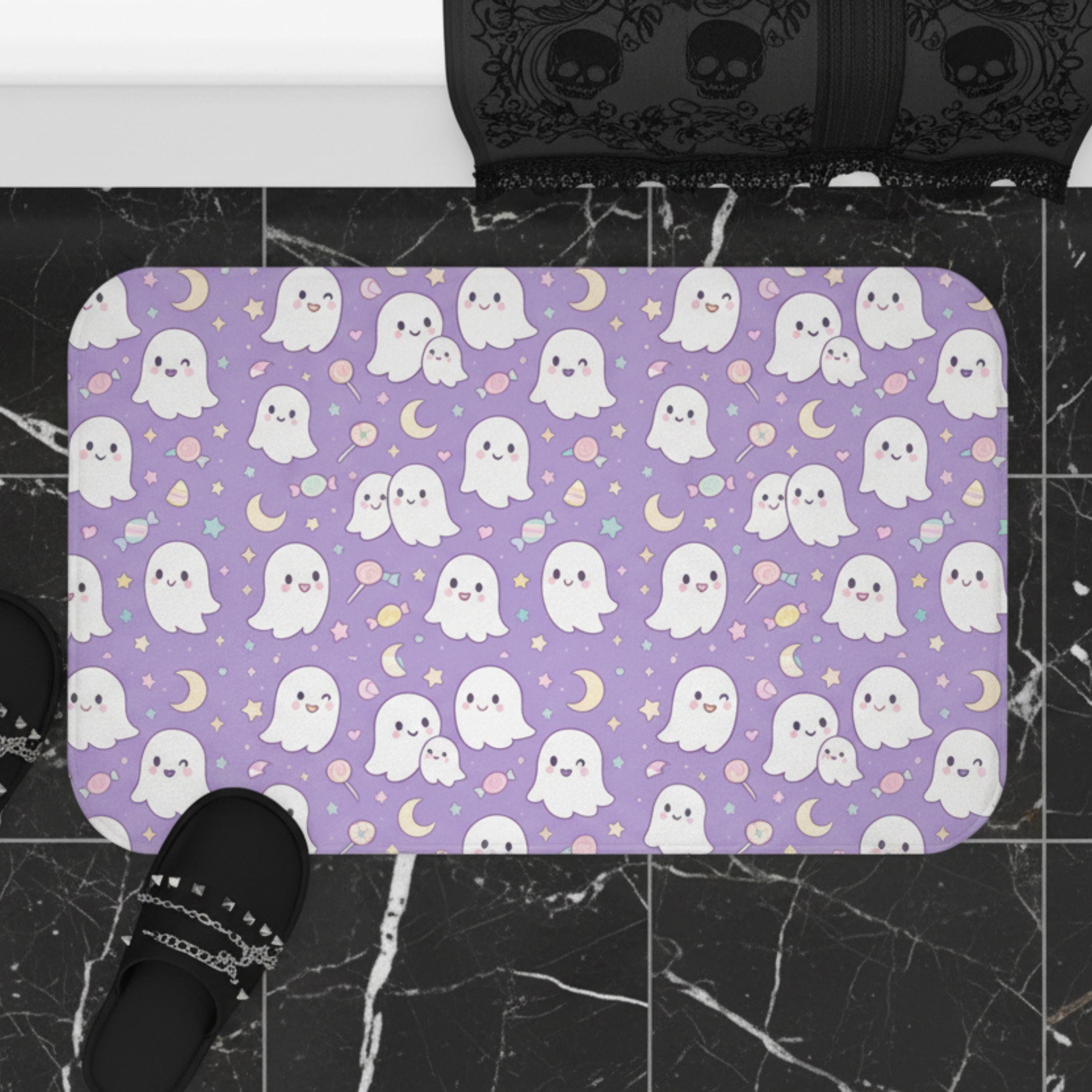 Kawaii Ghost Bath Mat - Pastel Goth Bathroom Rug - Memory Foam Microfiber Mat - Cute Spooky Decor - Anti Slip Floor Mat