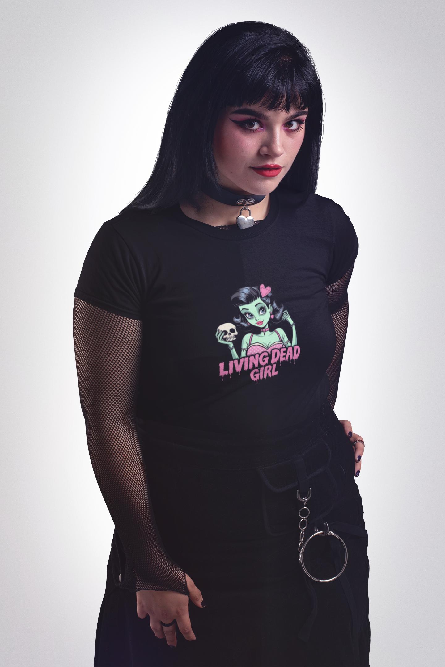 Living Dead Girl Slim Fit T Shirt - Pastel Goth Graphic Tee - Cute Horror Shirt - Feminine Gothic Top - Pin Up
